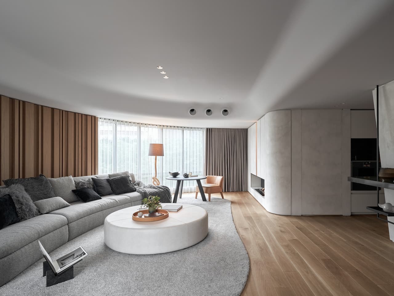 設計團隊為業主塑造出彈性靈活的住宅平面,使生活動線自由順暢;單純卻極具質感的材料,佐以精緻細膩的家具軟裝,構築出大器現代的時尚居所。