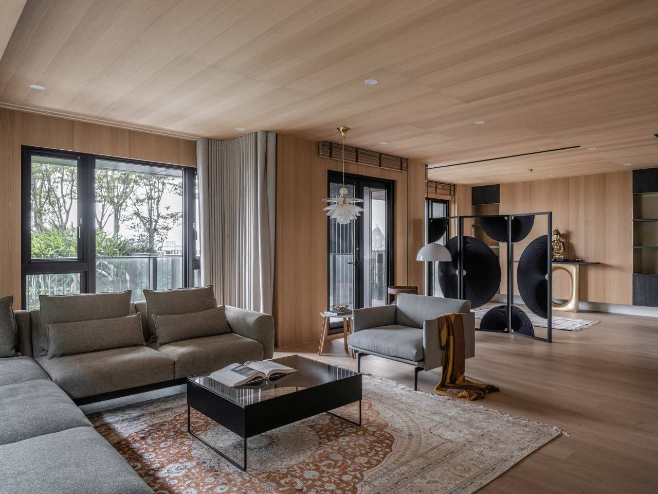 楊依靜設計師自信仰出發,將傳統宗教元素融入住宅空間中,同時融合基地景觀優勢,以樸實的材質色調,搭配北歐設計家具,打造一間具有濃厚禪風的現代木屋。