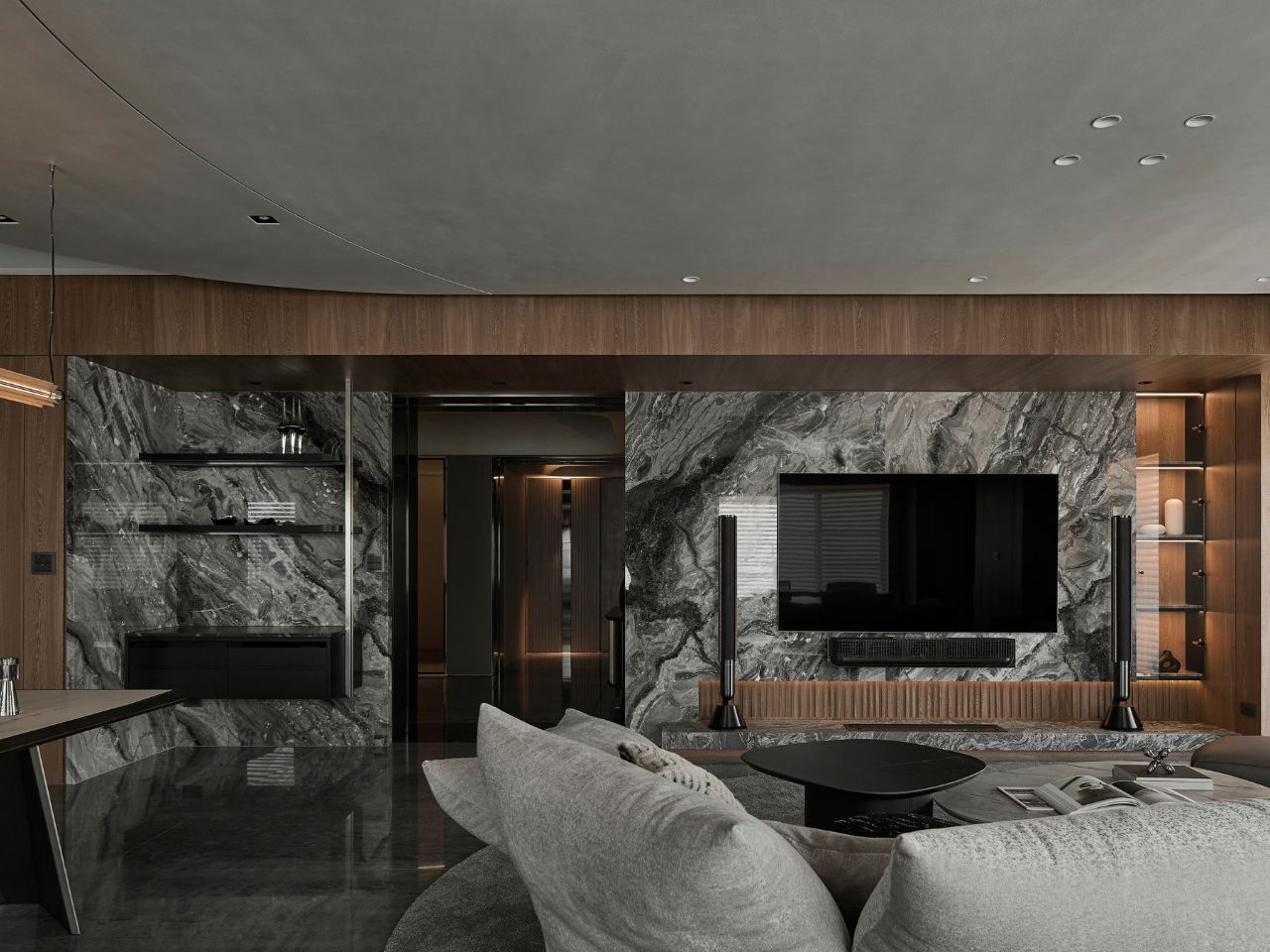 《獨我》如其名,在灰階質地與光影縫隙間,描繪居者的自我秩序。旋轉門片的靈活轉換,讓空間在開放與私密間游移,於日常流轉中展現生活的趣味與深度。
