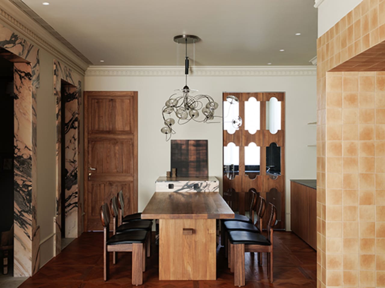 以「折衷主義」為題,讓不同材質與風格於此展開空間對話,一如一個家庭完整包容屬於不同成員的個人特質,將多元的生活軌跡複合呈現,展現生命的豐美層次。