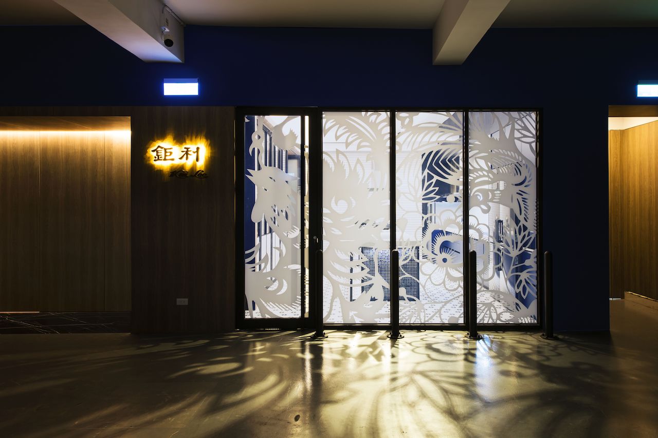 此案劃分成廚房料理區、餐廳以及會客區三大功能,透過活動式隔間拉門創造出場域的多元性,空間中亦設有多處出入口,讓每個區域都可以是一獨立的空間,自由進出不受打擾。首先進入的冷色調廚房料理區,是提供廚師開發新菜、品嚐料理的空間,以迷幻的藍色作為主調,一旁玻璃上印刷的鳳凰商標展示著品牌形象,隨著冷冽的藍色光影不禁意的倒映在空間中;偌大的吧檯提供了寬敞的料裡空間,吧檯外層包覆的鐵件,是香港老城區常見的鐵窗花造型,彎曲的鐵件以及緊密拼貼的馬賽克,皆描繪著老香港的市容樣貌。