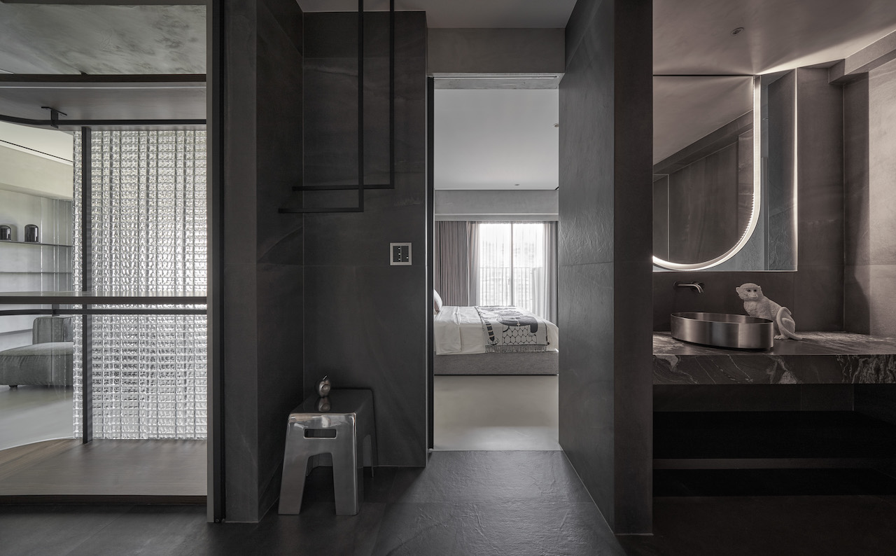 全案以低彩度的灰階色彩滿佈,冷冽低調的彩度,能讓玻璃最大限度的發揮,晉身成為空間主角。
