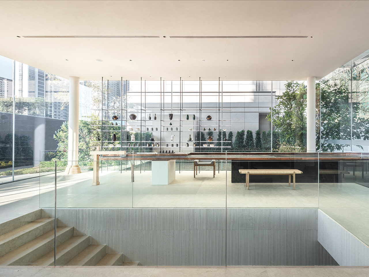 天花板結合LED燈與天井,讓人造光與自然光交織傾瀉而下。
