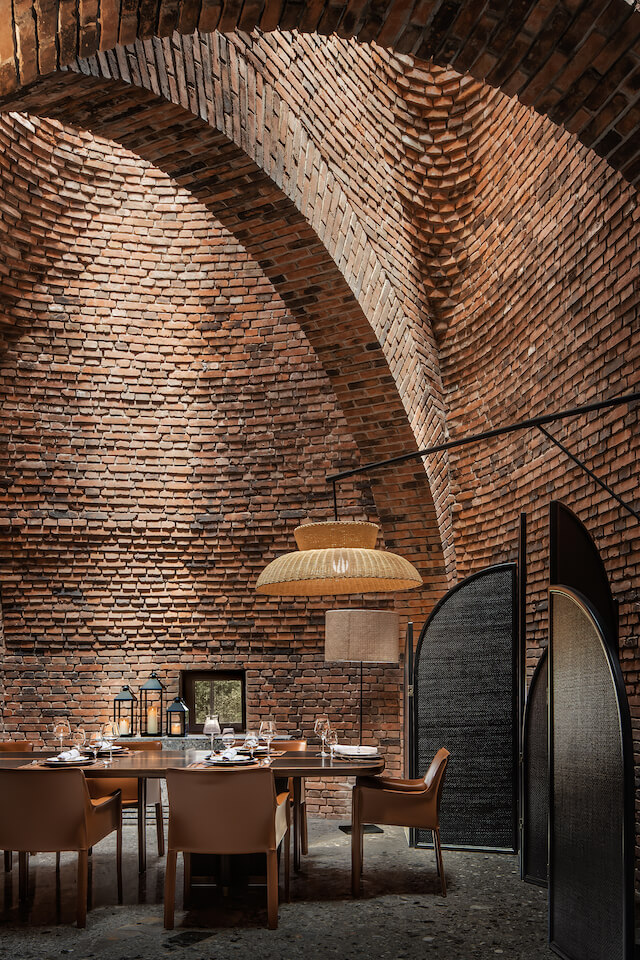 設計團隊以柯比意(Le Corbusier)名言為全作定調:「氛圍生於光,空間成於光,建築訴諸於光;我們的裸眼生來只見到陽光下的建築,陽光與陰影揭露了這些造型,建築正是捕捉光的容器,就如同樂器如何捕捉音樂般」,因此讓全案強調「光」以及「建築在光照中的敘述」。內部空間延續建築造型的自然曲線,著重突顯拱梁大跨度延伸、穹頂高挑等特色,順應穹頂線條而上,建築頂端的圓形開窗令自然光照從天灑落,加重室內的明暗層次與結構之美。燈光設計亦遵循自然法則,避免破壞牆體,儘量利用日光與結構造型、軟裝物件共同蘊生間接光源,在低調手法裡豐富空間層次,打造出舒適溫馨的光環境。