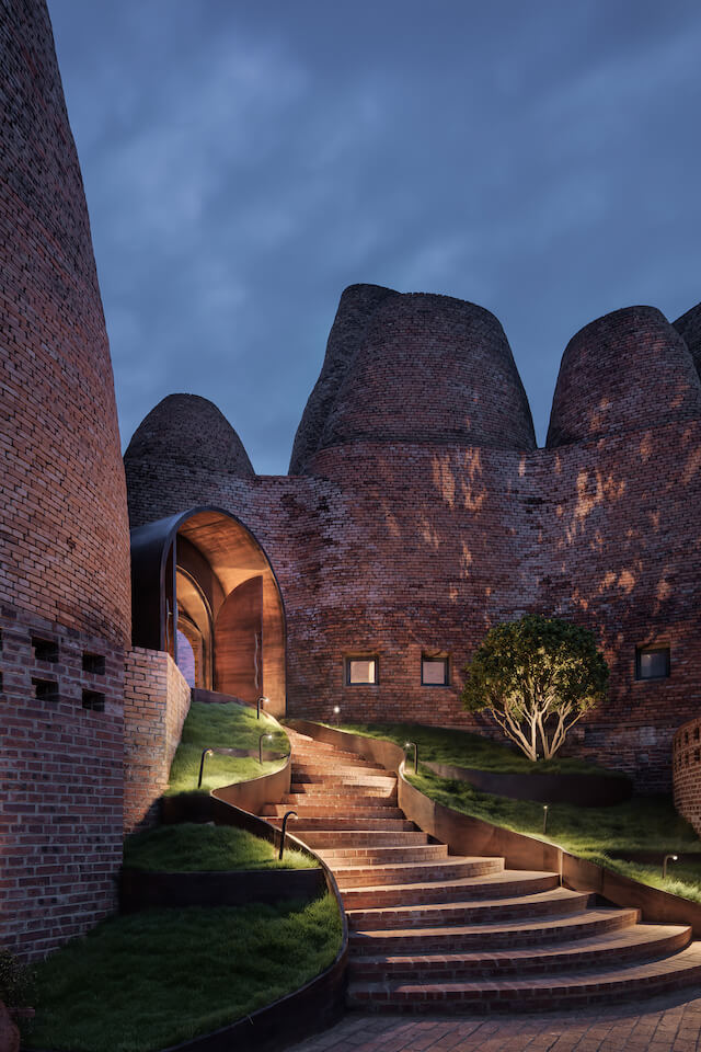 半朵雲建築採用當地紅磚砌造而成,外觀樸質,層疊有致,佇立於自然之中。