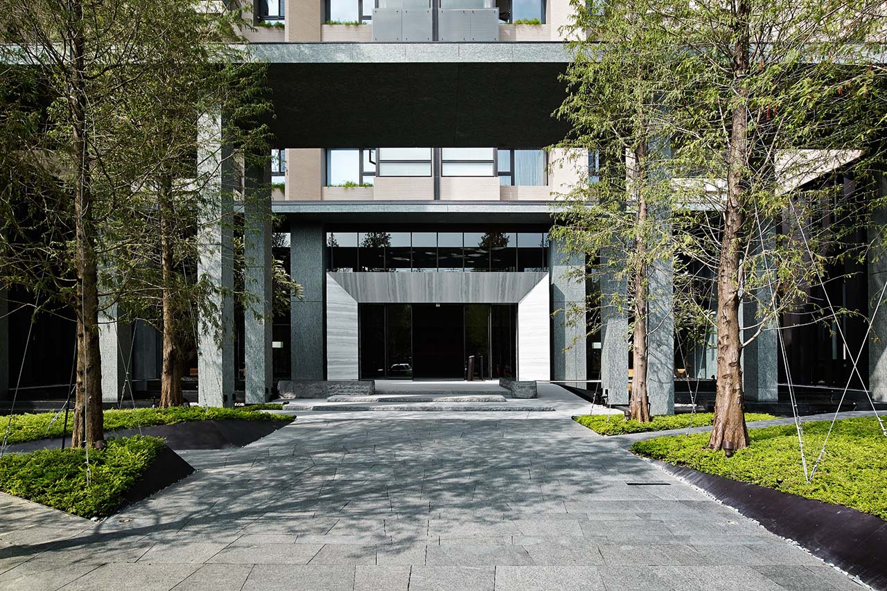 「閱上景」一案,位於台中市北屯兒童公園旁,基地面對大片公園綠地,並與市定古蹟「積善樓」相鄰,被自然與深厚人文底蘊包圍的環境,是本案最大的特色。負責操刀建案公設的蘇朝坤設計師表示,業主期望將室內環境與毗鄰的古蹟做意象上的結合,且積善樓門樓後方亦存有多棵有著百年樹齡的老榕樹,將古蹟和樹木豐厚的意蘊引入室內規劃,成為設計團隊的主要發想。此外,由於公設主要是提供住戶在社區內有更多別於自宅機能性的活動空間,整合出明確的引導動線是設計師認為最重要的部分。