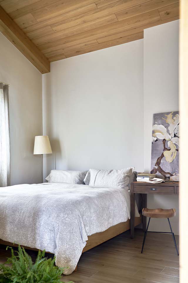 而後方鄰近窗邊的工作區,是整合女主人裁縫、繪畫、手作、園藝等興趣的機能場所,讓女主人在生活、工作時,能同時欣賞到室外的風景、感受自然的節氣與生命力;考量男女主人睡眠習慣的不同,因此將主臥室規劃為兩間臥房,中間透過共用浴室相連,以維護雙方的休憩品質。