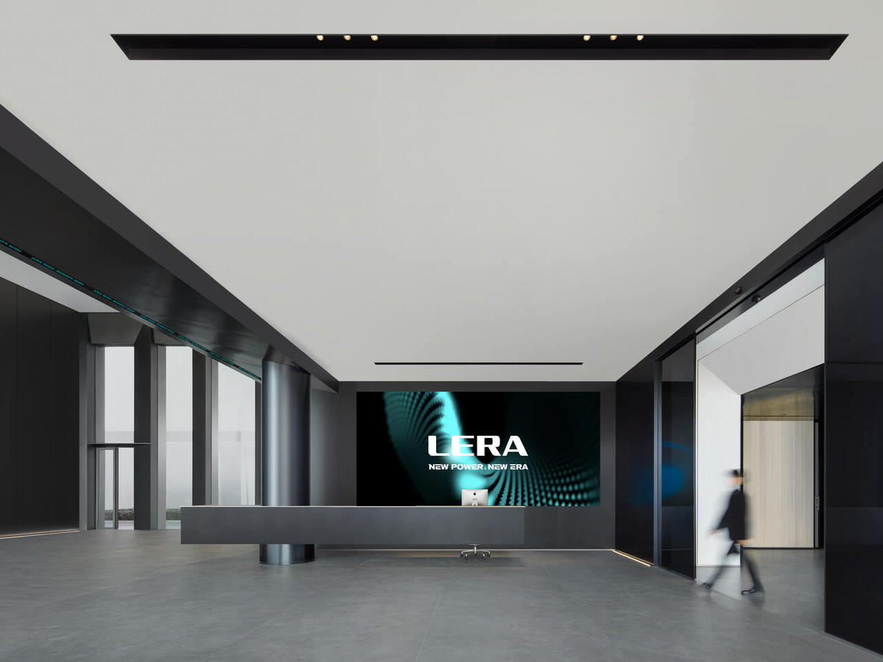 燈具陣列以飛機起飛的軌跡為靈感,闡明空間的航空屬性。