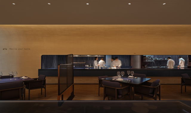 空廚餐廳始於廈航頭等艙「摘星綺旅」高端餐酒體驗,將對食物本味跟風土時節的思考從雲端貫穿至地面,替消費者帶來超出期待的用餐經驗。玻璃櫥架陳列展示餐廚器皿及當季食材主題,錯落的座位布局以及可靈活移動的桌椅,得以滿足並適應多樣需求;開放式廚房則面向用餐區域,聚焦於廚房和廚師,將展示功能有效結合於實用機能之中,突顯料理過程的透明與專業度。