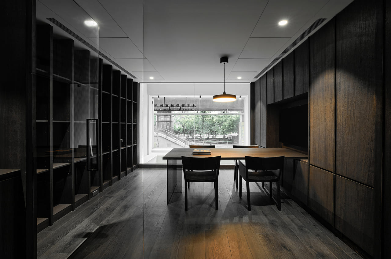 採用多樣視線與動線的引導策略相互配合,組織場景的和諧、探詢空間的平衡點,藉由天花的高度差異調整場域切換,形成分區;同時利用家具於每個區域定義自身獨有的視覺焦點,以光線、材質與動線邏輯來框塑邊界,避開完全封閉的牆面,降低壓迫感,平衡空間的開放感與使用的獨立性質,讓兩者在設計建構的邏輯中相依共生。