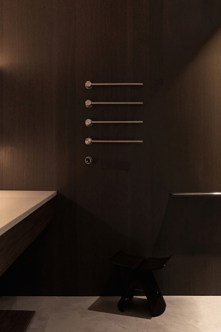 利用少許金屬,結合機能妝點深色鋪陳,為浴室點出視覺亮點。