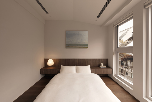 二樓透過木質地板,為私人空間鋪墊溫暖親人的感受,低矮但懸浮的床頭櫃不僅拉低空間重心,配合狹長的窗口設計延展空間高度,也因應簡潔的寢具,讓休憩的空間顯得單純、安定,還原屋主對冰島的記憶與材質的本質,承載情境的回憶與內在的思緒感受,讓身心一同放下繁雜外務,專注於純粹溫暖的當下。