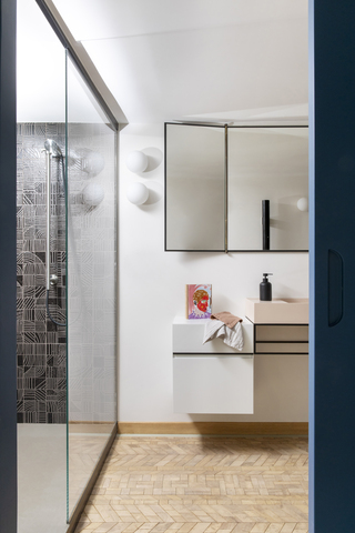 客廁選用衛浴品牌Ex.t的新藝術風格家具、西班牙建築師Patricia Urquiola設計的Mater系列磁磚,以及Formafantasma水龍頭,在細節處提升質感。