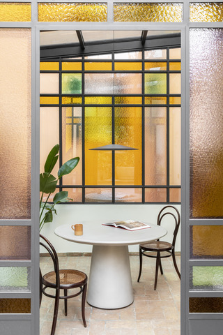 全作最引人矚目的是陽台,運用鑲嵌著柔和綠、粉紅與黃色調的彩繪玻璃,圍塑教堂景象莊重優雅。設計團隊以此作為開篇,修復過程猶如一場精密的考古作業,工匠們小心翼翼地保留原始玻璃的色彩韻律與節奏感,同時利用現代鋼構與防曬玻璃重建框架。