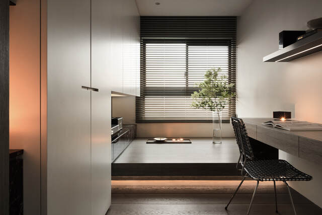 多功能房利用格柵與水波紋玻璃作為界線,既保障空間隱私,又讓自然光得以溫柔滲透。平時作為閱讀與工作的靜謐處所,當親友來訪時,只需鋪上充氣床墊即可轉變為客房空間。櫃體設計兼具收納與展示功能,特意預留位置與精心設計的門把細節,展現對使用者需求的周全考慮。