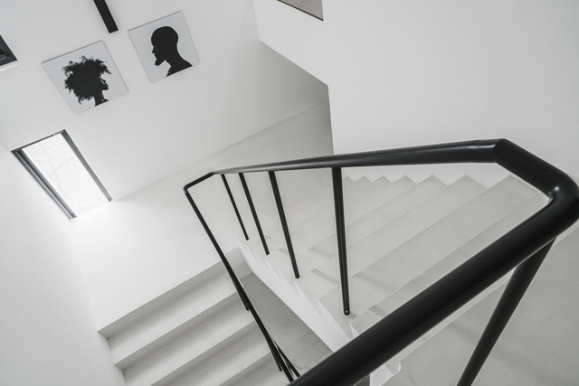 窗口和廊道在樓梯間交會不同的觀看視角,為空間深處引入明亮光源。