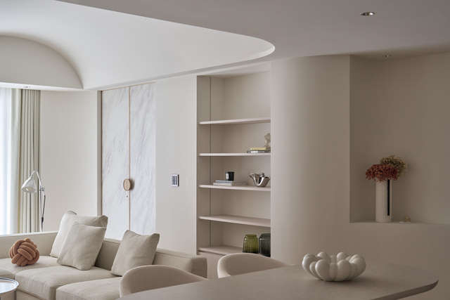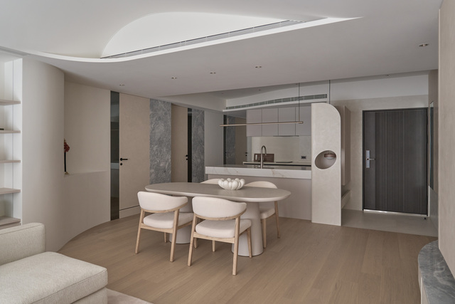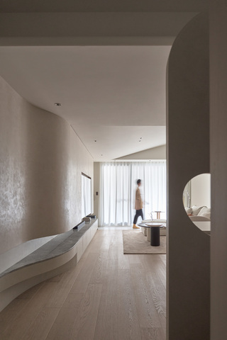 每一道弧線都是生活的流動。全案注重光線、空氣和視線的流轉,從玄關一路延綿至窗邊。