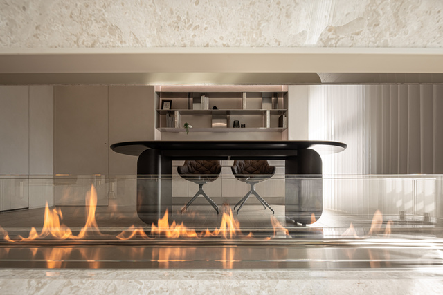 期許光線能與材質的質地共構舒暖自在的氛圍,利用中性的色階平衡石材跟金屬的冷冽。