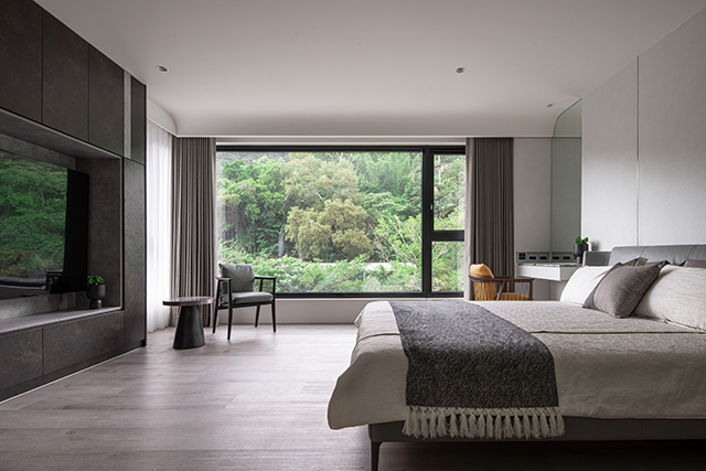 主臥室。蔥鬱窗景讓居者能得到完全的放鬆。