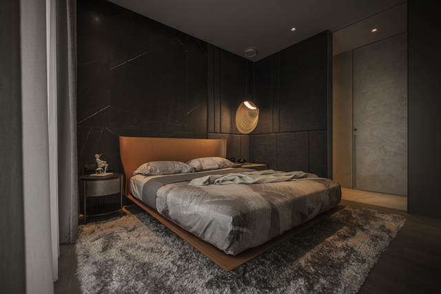對細節的雕琢亦延續進主臥室。繃布、皮革強化睡寢環境的高雅。