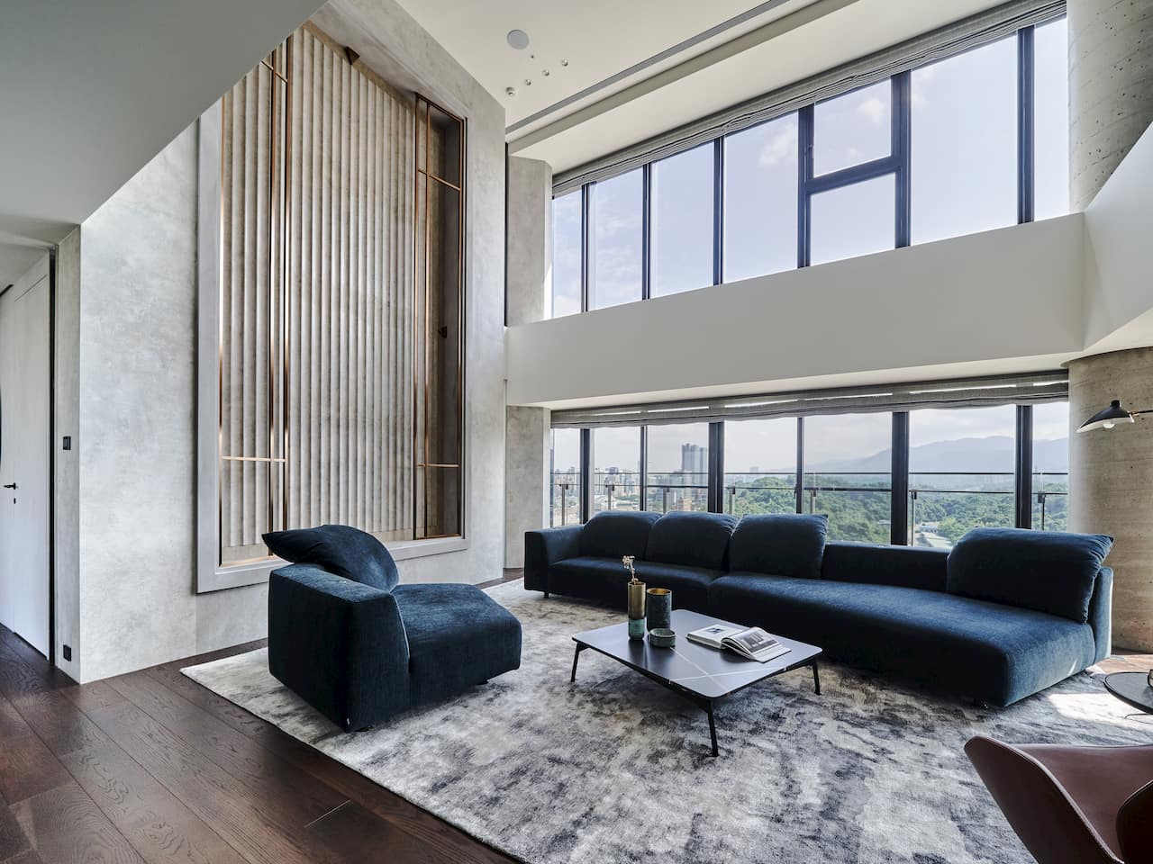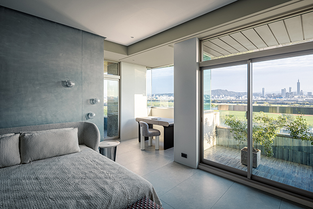 大面落地玻璃迎入遼闊視野,無遮擋的綠意與遠方101,共構動態畫作;窗邊可旋轉單椅給予多樣視角,強化人與環境的親密對話。