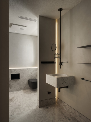 客廁於本次改造被擴充成完整的衛浴空間,設計師以相同材料構建。