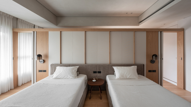 城市的節奏總是匆促,但家的狀態可以從容。在台北小巨蛋周遭的繁忙街廓中,《靜謐.共融》選擇以收斂的姿態描繪生活──不強調形式、不堆疊繁雜,設計的力道退居其後,讓光線與純粹的材質相互鋪敘出可以共處沉澱的場景。