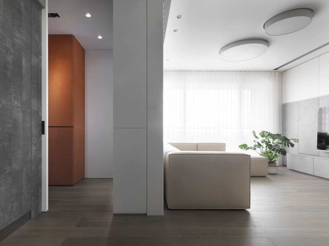 兩册設計團隊為此作確立出四項重點:第一,讓空間隨著家庭成員成長。考量育兒過程必要的安全措施與維護效率,奉行以消為顯哲學,去除原有複雜的隔間、裝飾,捨去造型雕琢、儘可能讓線條消隱,甚至減少固定家具配置,換得清雅無拘的空間感。也因為一切造型都是必要合理的存在,空間不做多餘贅飾,所以更能因應各種生活、教育或遊戲需求衍生定義,也由於輪廓簡潔,使得一切容易快速復原、簡易維護,讓居住者更可專注在家庭成員的交流互動,無需耗費心神養護空間。