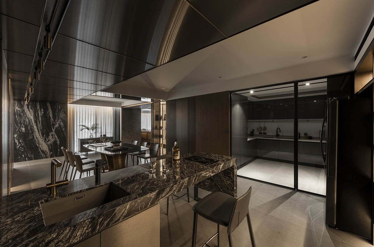 義大利塗抹風格的愛克板,襯托石紋中島,突顯空間細節表情。