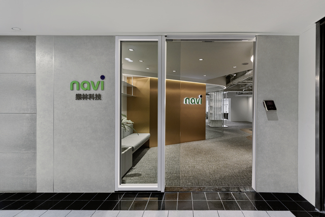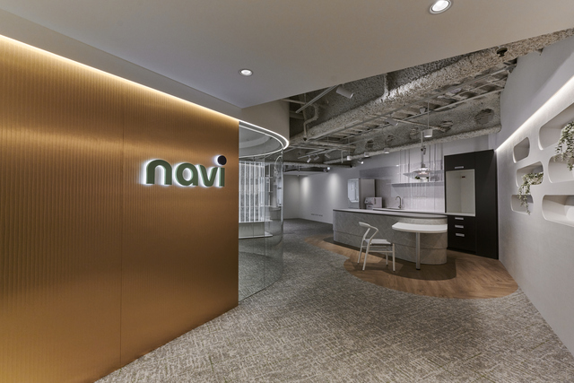 考量本案的樓高限制與單面採光,設計上選擇裸露天花、開放視野,盡可能引入自然光。金屬LOGO牆銜接弧形玻璃隔間,兼顧動線與空間感的開放延展。「雖然是獨立的會議空間,但因為視線不被阻隔,空間感還是保有整體性」。