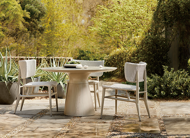 The Barbara Barry Collection for McGuire 打造的戶外家具系列,以細膩工藝與柔和語彙,重新定義「優雅生活」的外在延伸。Bow Outdoor ounge Chair,以沉穩的鑄鋁椅架,結合平織壓克力繩的細膩紋理,以自然色調為戶外空間注入優雅與恆久質感。(Baker-McGuire 貝克傢俱)