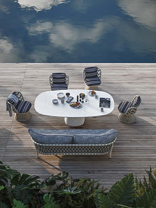 Rolf Benz YOKO戶外系列,擁有德國設計的簡潔線條,交織法國、義大利風格。包括模組化沙發、邊桌、餐桌、扶手椅,希望與自然環境融為一體,根據使用需求,隨心配置在各空間,是一款功能强大的戶外系列。(D&L丹意信實集團)