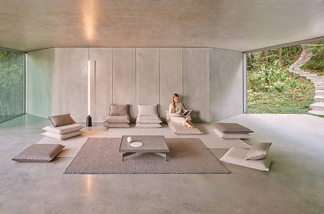 Nomad系列採用100%再生纖維製成,透過地毯、懶人椅與抱枕,創造多種輕鬆隨意的場景,構築空間氛圍。而Tuareg系列誕生於印度土地上的靈感邂逅,細小錯落的花朵圖案,取材自當地傳統紋樣,宛如一幅手工編織的旅行日記。(築意名品家飾)