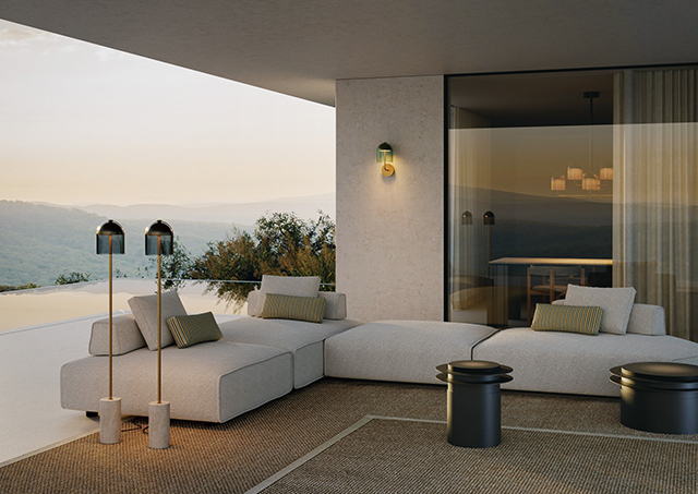 Doma壁燈勾勒出精緻沈穩的輪廓。Murano玻璃鐘罩搭配細膩的金屬質地,材質與色彩低調對比,搭配不同的燈罩顏色,產生有趣的視覺觀感。Doma壁燈以其柔和形狀與觸控式調光,讓光在細微變化中緩緩瀰漫於空間,即便在戶外也能感受那份靜謐浪漫。(Light Plus)