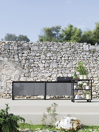 Varaschin的OUTDOOR COOKING 系列戶外廚具,融合義式美學與耐候工藝,採用抗UV、防水、防鏽材質,兼具堅固與輕盈,輕鬆應對各種戶外氣候。模組化設計靈活組合,搭配耐高溫檯面與實用收納,配備創新燒烤爐,並可搭配多功能手推車、餐具櫃、餐桌等配件,讓料理與聚會自然銜接,成就庭園中的社交核心。(中歆企業)