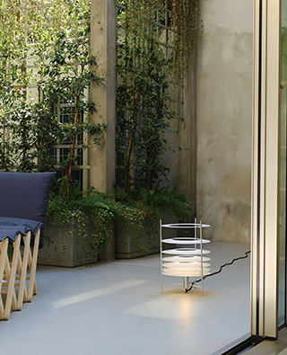 Topuro桌燈、地燈,宛如光的動態雕塑。概念源於對光的非物質性探索,轉述光在空間中移動、在傳播中強度漸弱的意象。設計師Guido Valin以沒有螺絲接點的燈身,搭配俐落穿透的不鏽鋼結構,以及一系列上下表面質地些微差異的弧狀壓克力圓盤,塑造光漸進消散的動態瞬間,實現抽象如光的輕盈質地。(Light Plus)