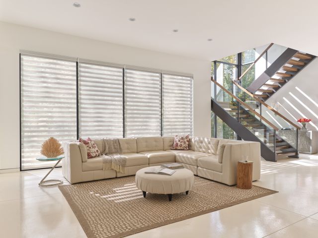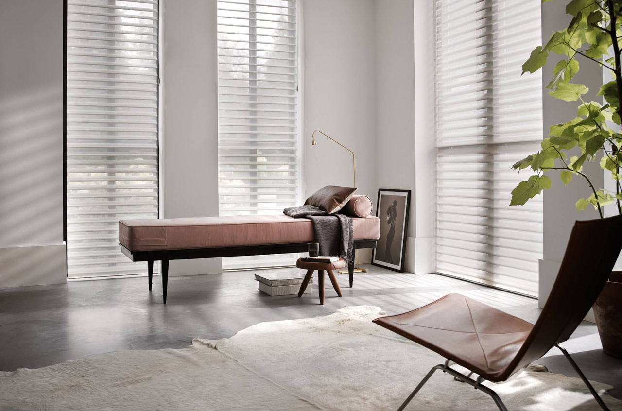 絲柔百葉Pirouette搭配智能PV3電動智能操控,調光調隱私。
