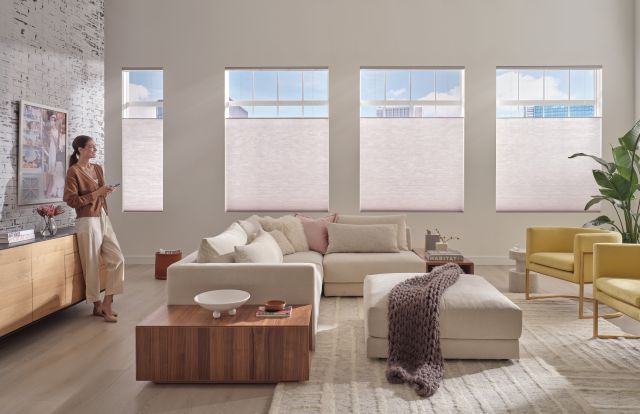 PowerView智能系統透過應用程式、遙控器輕鬆操作。