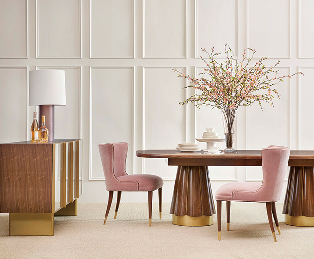 Barbara Barry 設計的Marino Dining Chair,以俐落輪廓與細膩工藝,譜寫經典的設計語言。椅背以實心胡桃木勾勒支撐線條,帶來安定支撐;錐形椅腳綴以青銅細節,低調中見精緻。無論是日常餐敘或盛宴時刻,都以恰到好處的姿態,優雅迎接每一次入座。(Baker-McGuire 貝克傢俱)