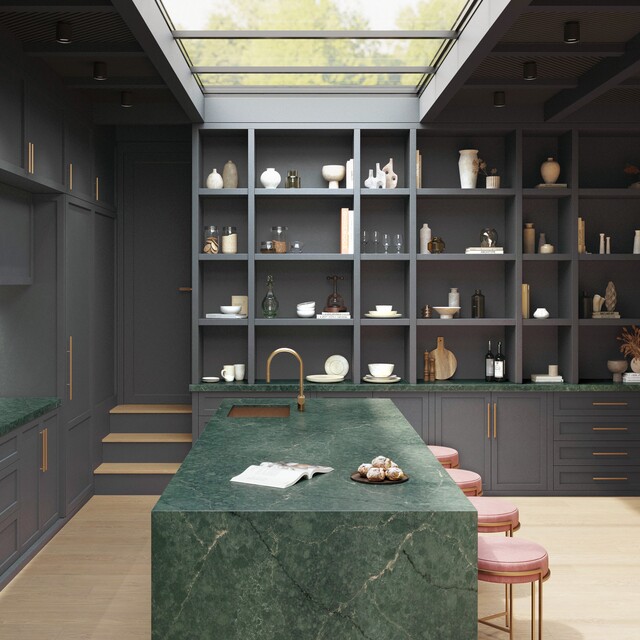 西班牙賽麗石Le Chic Bohème系列中的Jardin Emerald(CS722),將空間打造成綠意盎然的奢華綠洲,為空間注入高級氛圍。檯面、牆面或其他設計細節,都能完美結合迷人風格、優雅質感與卓越耐用性,無懼水漬、皂垢和時間考驗,展現創意和材質革新如何將平凡日常昇華為非凡體驗。(興立富)