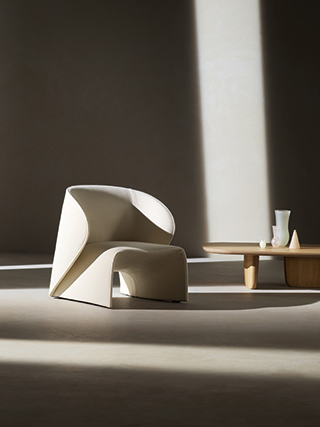 造型獨特的Narinari 小型扶手椅,以其獨特和創新引人注目,充分體現B&B Italia 攜手年輕設計師Tiziano Guardini and Luigi Ciuffreda 的合作成果。採用原始切割毛氈製作,如摺紙般連續流暢,兩個追逐盤旋的曲面勾勒出柔和卻果斷的體積感。有機與數碼元素的融合,反映當代環境中的強烈矛盾,經典與未來主義於此碰撞。(栢悅國際)