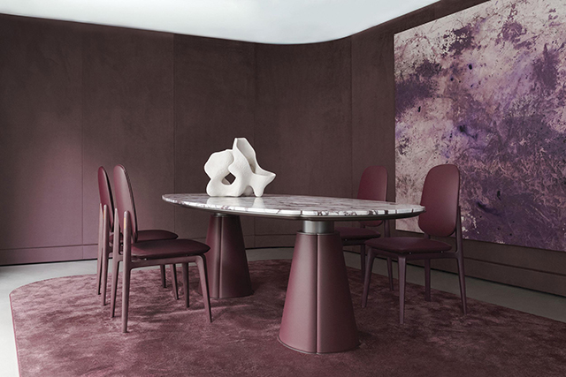 Giorgetti 以 Floria 系列為節慶氛圍增添優雅光彩,延續巴黎知名設計工作室Pierre-Yves Rochon在國際奢華設計界的永恆印記。雲紋大理石桌面,如花朵般綻放的和諧線條,在大理石桌面細緻的雕刻與四角的圓潤倒角中悄然綻現。深酒紅色皮革桌腳穩重典雅,彷彿冬日爐火旁的聖誕紅與雪白相映,為聚會帶來溫度與儀式感。(易雅居)