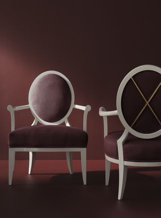 Barbara Barry 經典之作 Oval X Back Lounge Chair,於 The Baker Reserve Collection 以更細緻的比例重新詮釋,整體輪廓更為輕盈修長,溫柔而流暢的線條貫穿其間,以細膩胡桃木雕琢柔和弧度,展現含蓄而內斂的優雅氣質。深沉飽和的波爾多紅酒色澤,為作品注入低調奢華的層次感。(Baker-McGuire貝克傢俱)