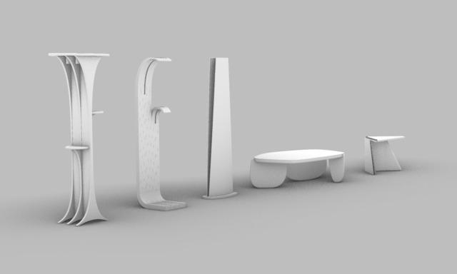hos的作品從人造石英石的特性出發,透過熱彎工法,讓材料在高溫之下展現驚人的柔韌性。曲線、折線與曲面,在這裡都得以重新被想像;這些物件不僅呈現材料的實驗性,也延伸出日常使用的可能,讓「科學中的美」真正進入生活。