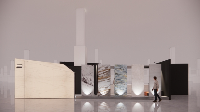 這個場域並非單純展示工法,而是以光為語言,透光石材在照明與厚度的交疊下,呈現細膩層次,在此,石材不再是冷硬建材,而是具有情緒與場景感的生活媒介。