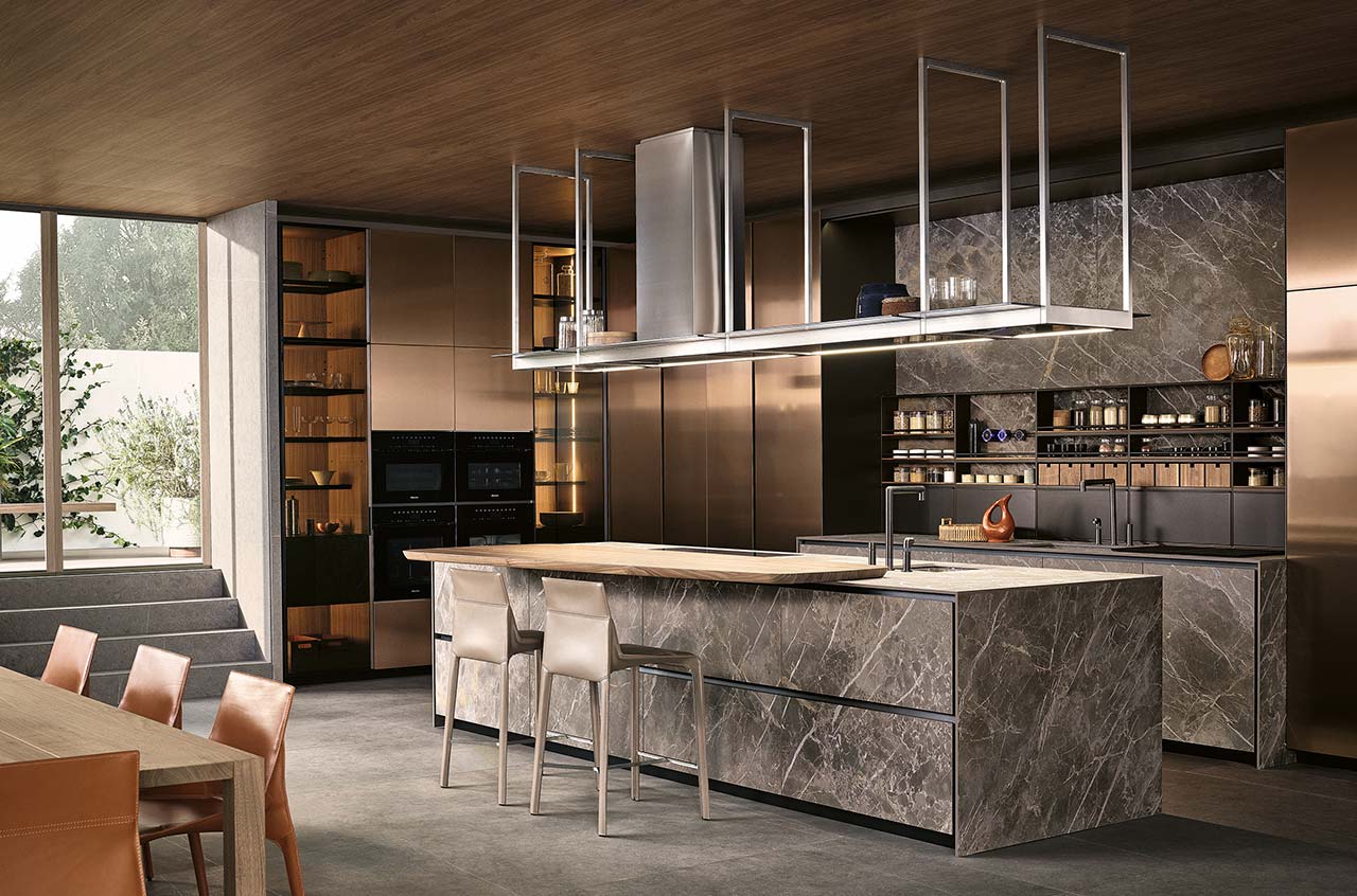 「STOSA」以不同思維對空間進行規劃,跳脫舊有框架、突破現有思維,承襲義式古典優雅風格的風貌,透過原木基材,描繪中世紀設計輪廓軌跡,投射出詩意且華麗的語彙。Dolcevita系列延續義大利獨樹一幟的典雅浪漫風格,以純粹石英檯面、簡約框線裝飾門板,搭配上銅色金 屬把手,打造優雅精緻的古典廚房。(禹臣實業)
