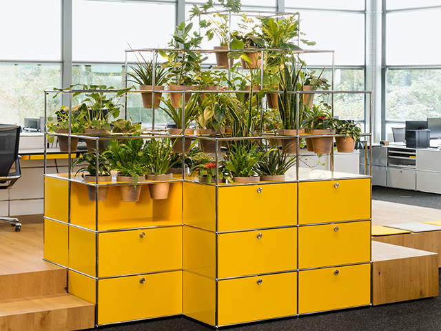 高度模組化的設計,靈活滿足辦公建築的多元需求,當空間需求改變時,只需重新配置模組就能永續使用。如今,回應綠時尚風潮,USM 也樂於擁抱自然,納入植物純淨空氣、舒緩壓力、提升工作效率的優點,為每個空間創造沁涼綠洲。