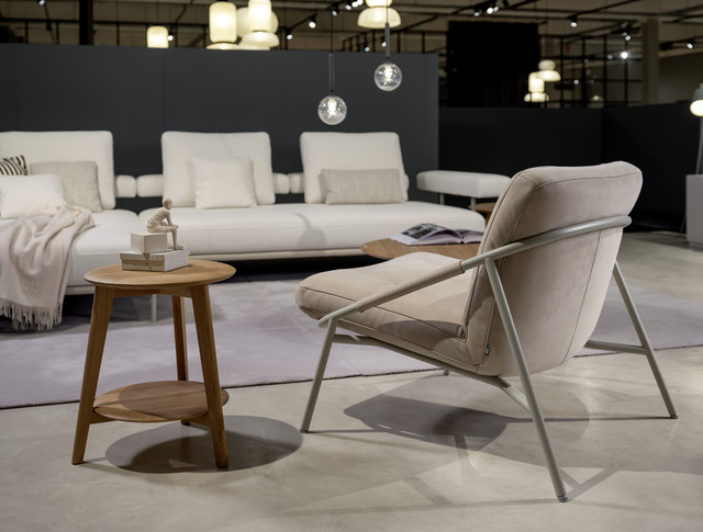 與JAZ沙發系列同步推出的LUKE單椅,則以更為聚焦的形式延伸品牌對輕盈結構的探索。透過金屬框架的支撐,坐墊和靠背內飾彷彿懸浮於空中,完美詮釋「浮空美學」。當LUKE作為獨立單品使用時,能成為視覺焦點;與JAZ系列搭配時則可共構一致且具層次的客廳景觀。