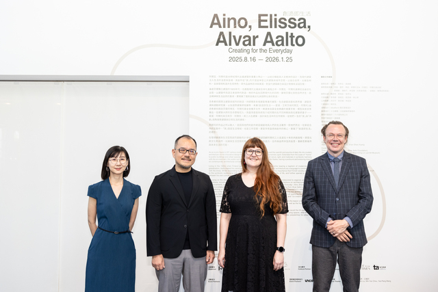 展覽策劃團隊合照。左起忠泰美術館總監黃姍姍、忠泰基金會執行長李彥良、阿爾瓦.阿爾托博物館首席策展人瑪莉.穆爾托涅米、阿爾瓦.阿爾托基金會首席策展人蒂莫.里耶科。