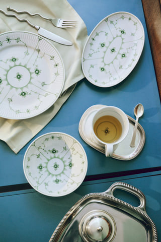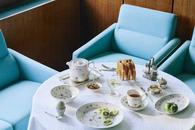 SAS皇家酒店被譽為全球第一家「設計旅館」,從建築外觀到室內細節皆出自 Jacobsen設計。「青蘊平邊唐草」作為其餐廳專屬餐瓷,不僅見證了現代主義設計的里程碑,更是丹麥設計與皇家工藝完美融合的象徵。「Green Fluted Plain青蘊平邊唐草」不僅是一款全新的餐瓷系列,更是一段設計史與工藝史的再生,適逢品牌250週年之際發表此系列新品,期許更多人能深刻感受皇家哥本哈根如何持續以當代美學詮釋經典傳承。